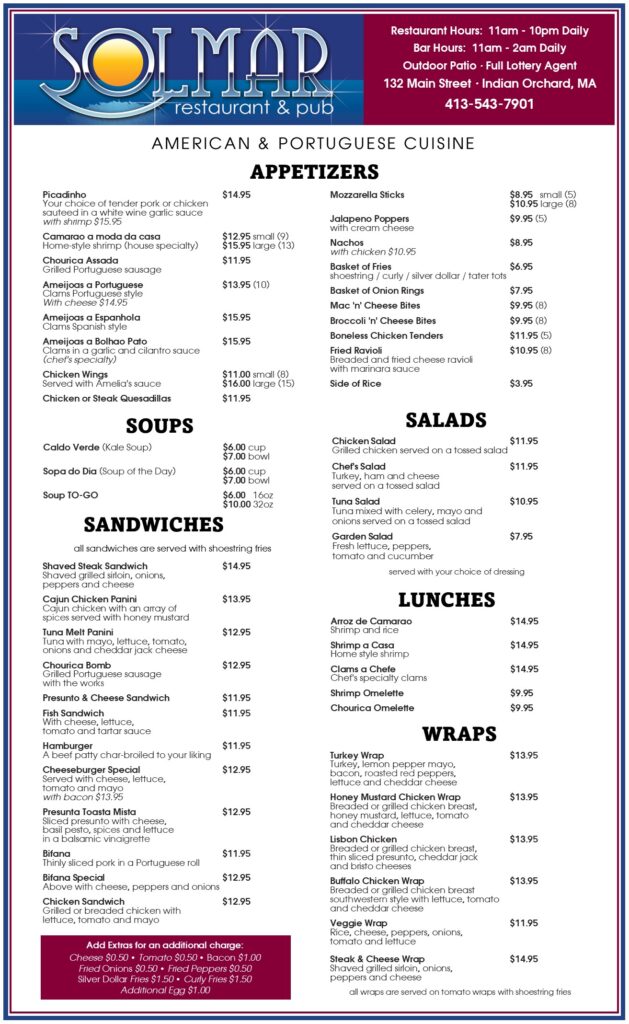 Our Menu Visit Us132 Main Street Indian Orchard, MA 01151 Call UsCall us at 413-543-7901 Follow Us Facebook-f Instagram